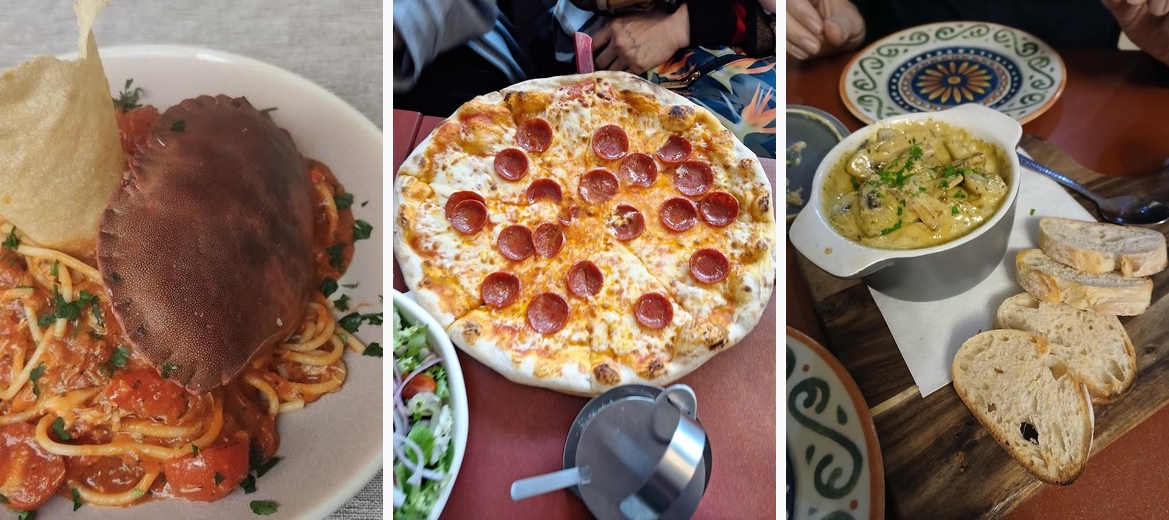 Excellent food, the garlic bread with tomato and cheese practically melted in your mouth. The lasagne was delicious, best I've tasted at a restaurant. Prices are reasonable, and the service was outstanding. I ended up taking some home as they are very large portions, so enjoyed it again the next day 😋